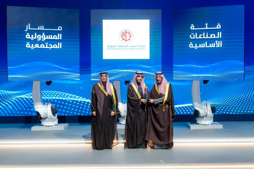 وجرى تسليم الجائزة خلال الحفل الرسمي من وزير الصناعة والثروة المعدنية، الأستاذ بندر بن إبراهيم الخريّف، حيث تسلّمها نيابةً عن الشركة الرئيس التنفيذي لشركة أسمنت المنطقة الجنوبية، الأستاذ عبدالسلام بن عبدالله الدريبي، بحضور عدد من المسؤولين والقيادات الصناعية.